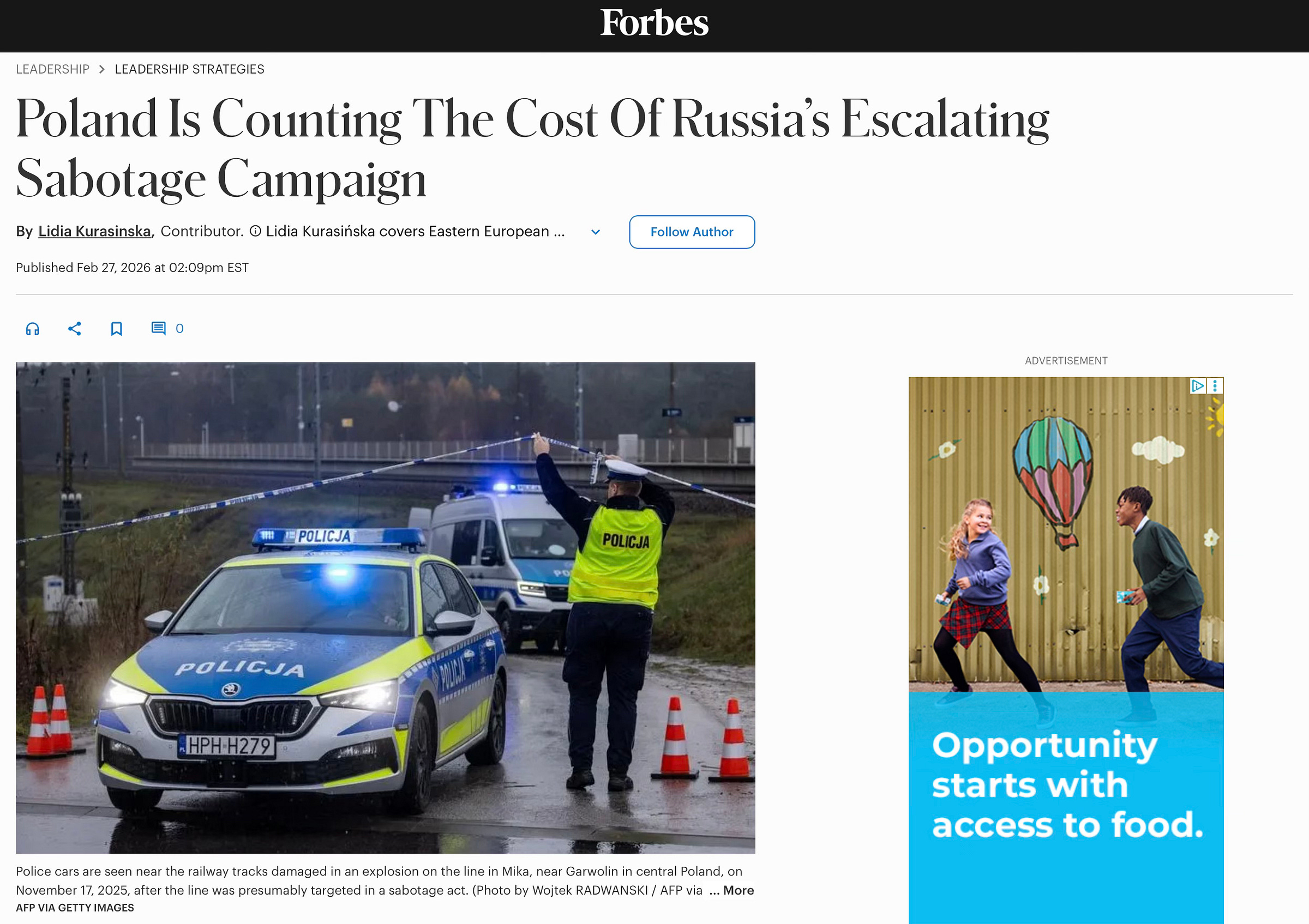 27 lutego 2026 r. w artykule “Poland Is Counting The Cost Of Russia’s Escalating Sabotage Campaign” na Forbes.com pojawił się mój komentarz.